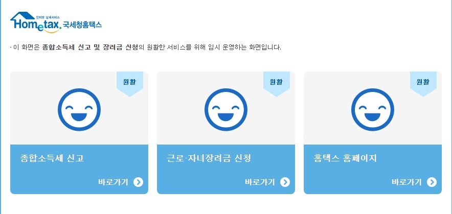 국세청 홈택스 웹사이트(https://www.hometax.go.kr)에 접속합니다.