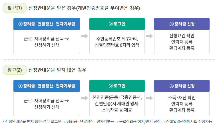 방법: 안내 대상자의 동의를 받아 장려금 상담센터(1566-3636)의 상담사나 세무서 직원이 대신하여 신청할 수 있습니다.