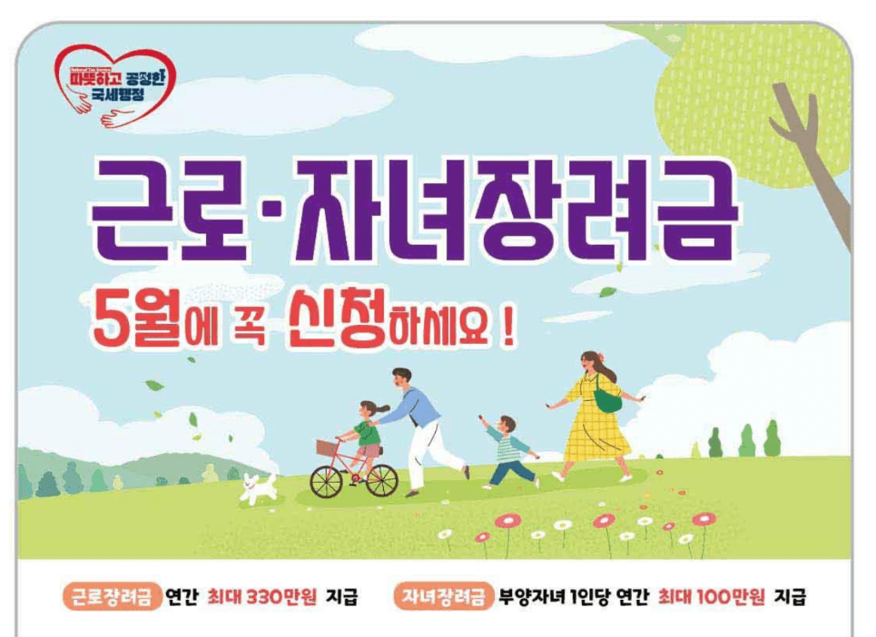방법: 국세청 홈택스 웹사이트를 통한 온라인 신청이 기본입니다. 홈페이지 접속 후 '근로, 자녀장려금 신청하기' 메뉴를 선택하여 신청을 진행할 수 있습니다.