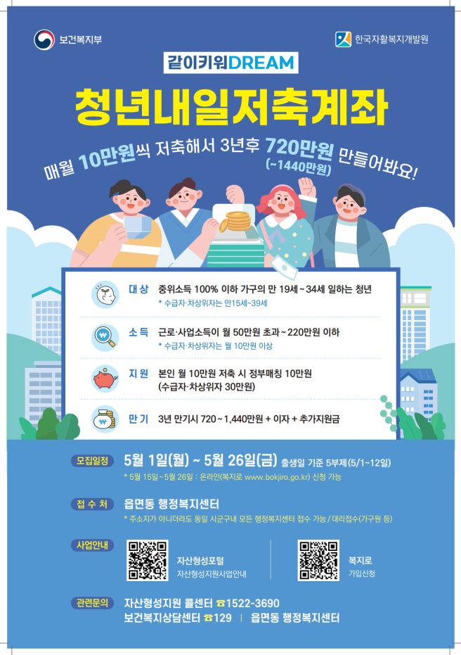 ● 차상위 이하: 매월 10만 원 저축 시 정부에서 30만 원 지원
