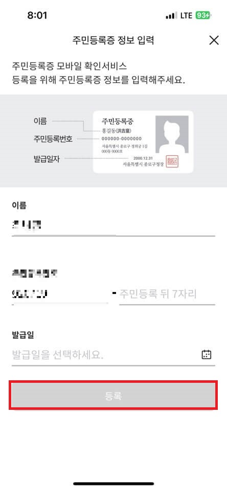 본인 인증이 완료되면, 앱 내에서 신분증 정보를 입력해야 합니다. 이 단계에서는 신분증에 기재된 정보를 정확히 입력하는 것이 중요합니다.
